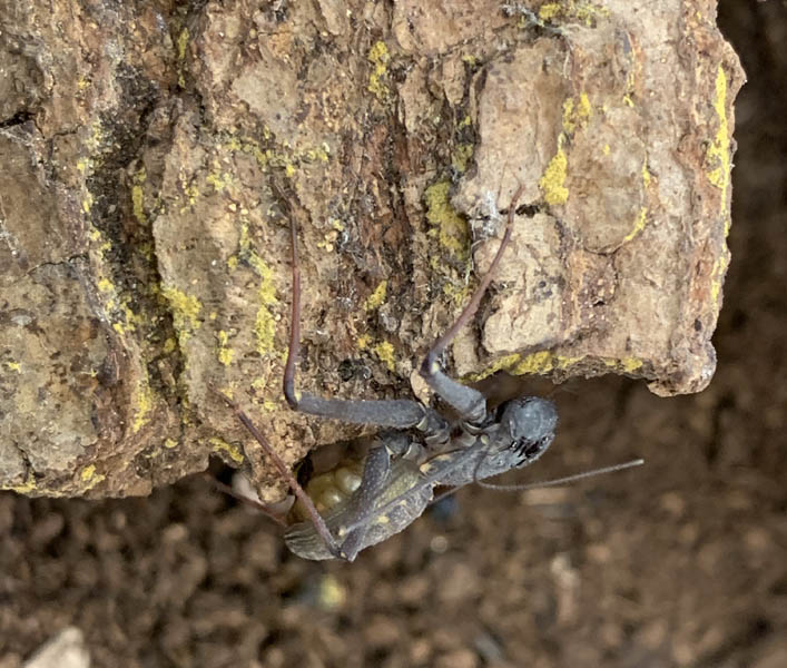 On the bright side both of my Regal Jumping spider egg sacs have now hatched. These really are the cutest spiders I’ve ever seen! My ‘family’ of praying mantids are all doing well and my Orchid mantis has laid an egg sac. The praying mantids are really for my Ginny’s Jungle events but if the egg case hatches I will certainly be selling the babies on my website and the same goes for some of my other Ginny’s Jungle ‘pets’, Katydids, Horse-Head grasshoppers etc. I have some beautiful and unusual arachnids that I hope will produce young soon. The Tail-less Whip scorpions are certainly pregnant as I can see the eggs in their abdomen. I am hoping that my Asian Forest scorpion, Giant Vinegaroon, Red Back Vinegaroon and Desert Hairy scorpion are also gravid but only time will tell. It is so difficult to know if they are pregnant or just fat. Scorpions certainly fatten up before moulting and the moulting process can take many, many months!